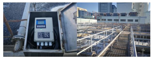電磁流量計(jì)全部采用分體式不銹鋼304本體,本體長(zhǎng)期浸泡在大麥污水池中;另外在總出水管道上安裝有流量計(jì)和pH計(jì),監(jiān)測(cè)總的出水量以及出水口污水的pH值,保證整個(gè)工廠污水處理有效快速地進(jìn)行。